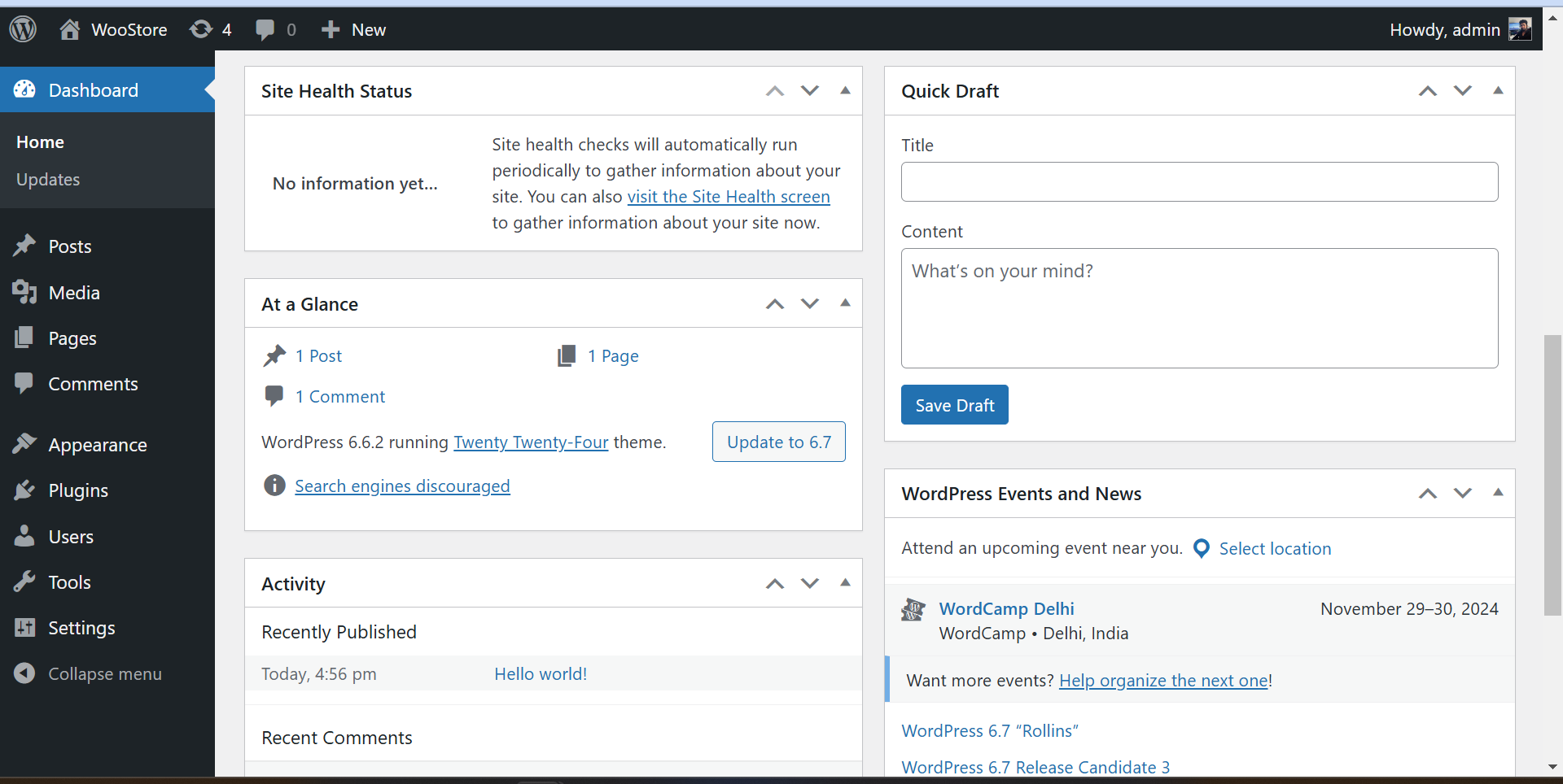 First, We need to install WordPress in our local environment. We can download the WordPress source from https://wordpress.org/download/ and run it in our local environment but we will use docker to run WordPress without the hassle of managing environments like PHP, and MySQL for running WordPress.