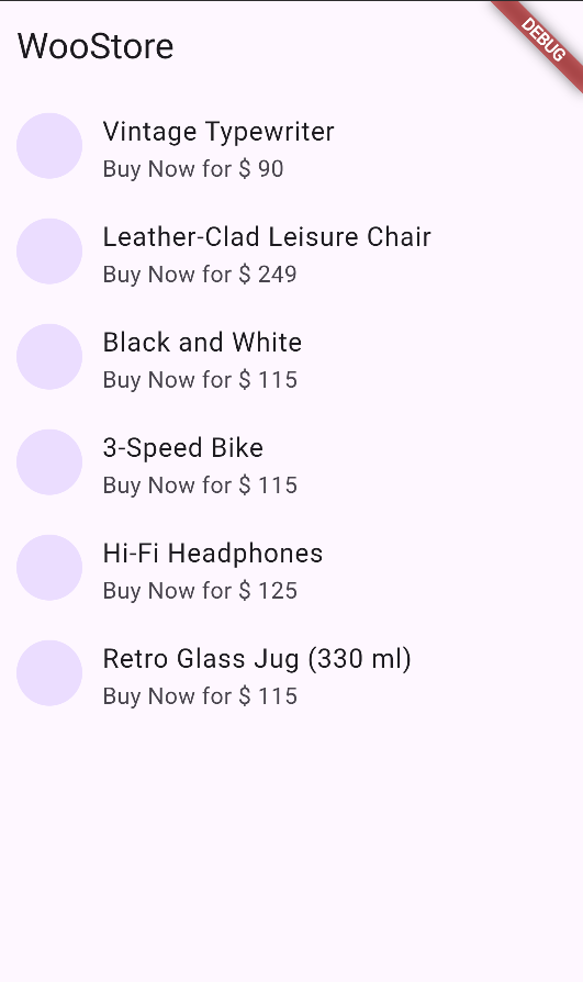 The end result of your flutter application will be this view displaying the products from your woocommerce store.
